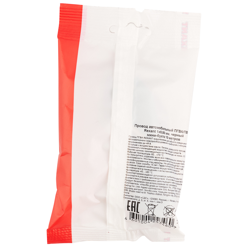 Цвет провода – черный, сечение – 1х0,50 мм, длина – 10 м.