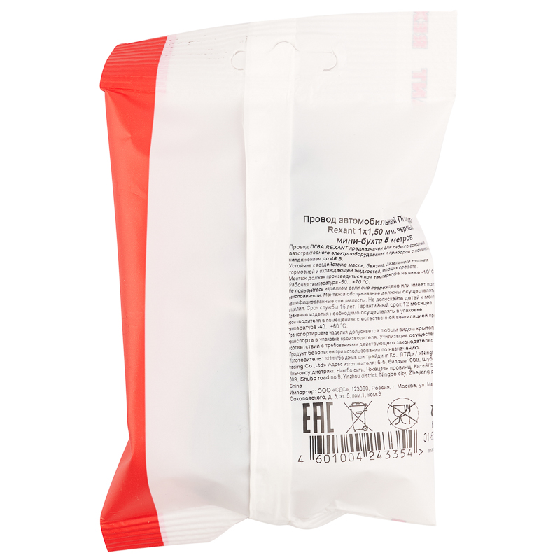 Цвет провода – черный, сечение – 1х1,50 мм, длина – 5 м.
