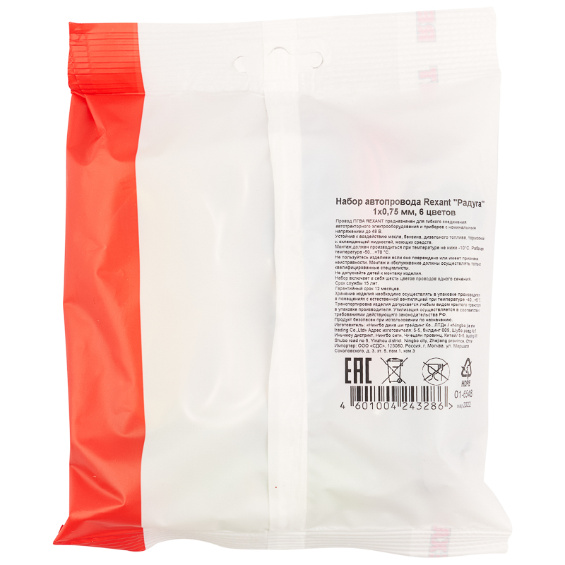 Набор автопровода REXANT Размер: 1х0,75 мм 6 цветов (белый, желтый, зеленый, красный, синий, черный) Длина: 3 метра
