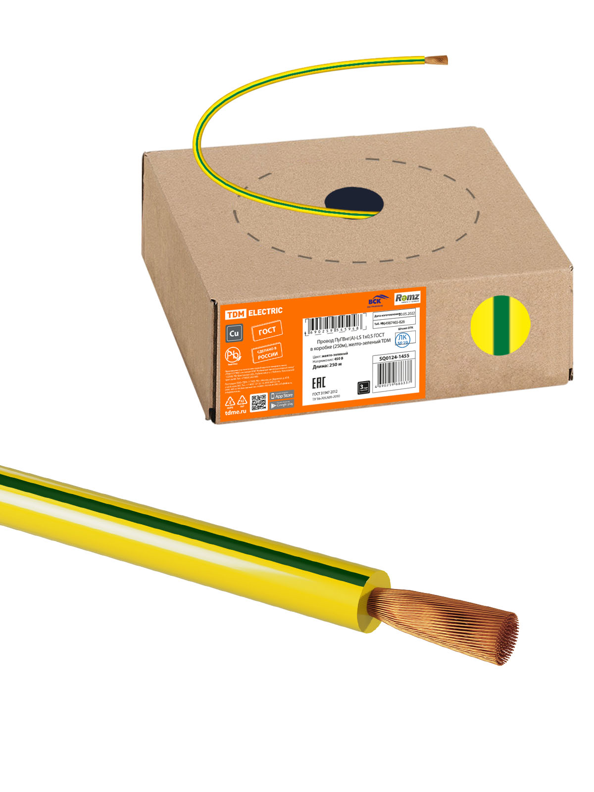 Провод Провод ПуГВнг(А)-LS 1х0,5 ГОСТ в коробке (250м), желто-зеленый TDM SQ0124-1455