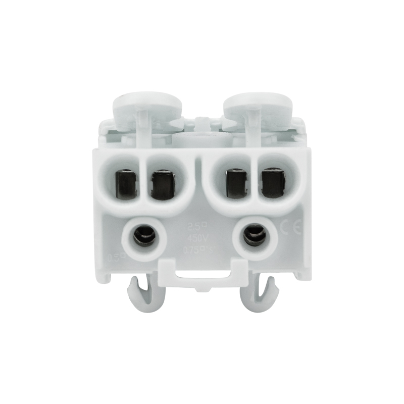 Пружинные двухполюсные клеммы с монтажными ножками REXANT предназначены для присоединения и ответвления одножильных и многожильных медных проводников в электрических цепях переменного тока напряжением до 450 В. Наличие маркировки («фаза», «ноль», «земля») на подвижной части зажима, наличие монтажной ножки. Материал корпуса – самозатухающий ПВХ, материал контакта – электротехническая сталь.
