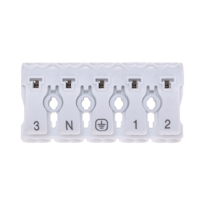 5. Количество полюсов - 5. 6. Наличие маркировки («фаза», «ноль», «земля») на подвижной части зажима. 7. Температурный диапазон в режиме эксплуатации: -60... +40 ℃