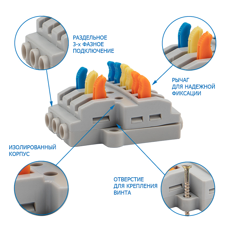 Многоразовые соединительные клеммы REXANT предназначены для соединения медных одножильных и многожильных зачищенных проводников тонкого сечения.