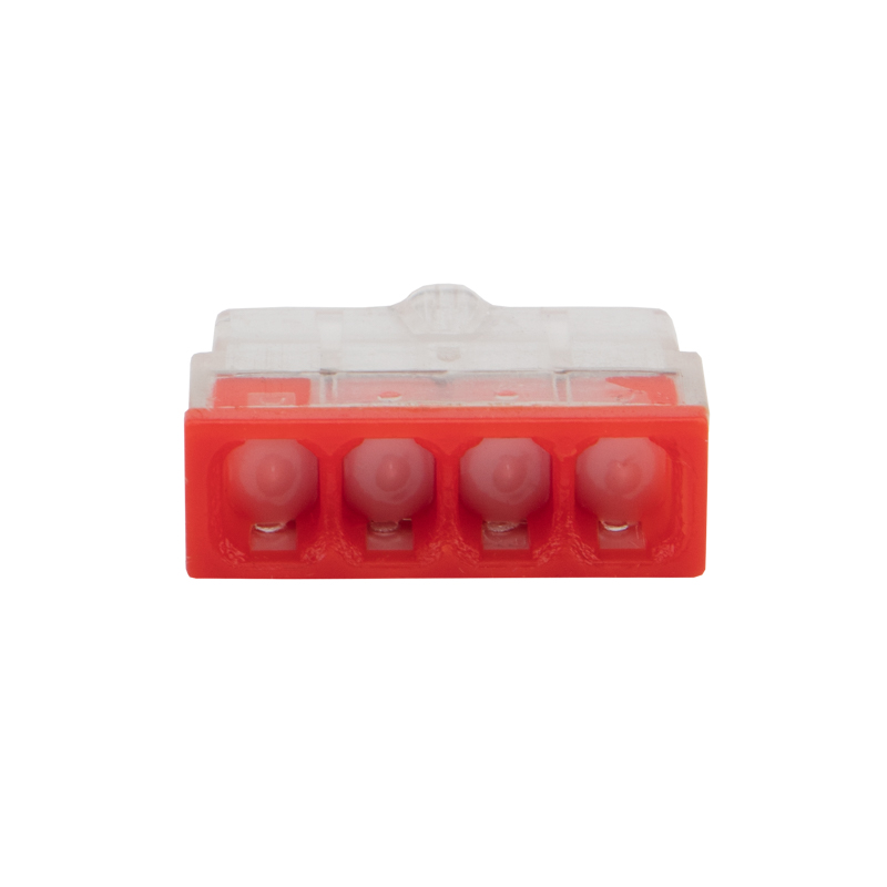 Компактный прозрачный корпус удобен для контроля соединения, а яркая цветовая разметка способствует визуальному различию клемм по количеству проводников.