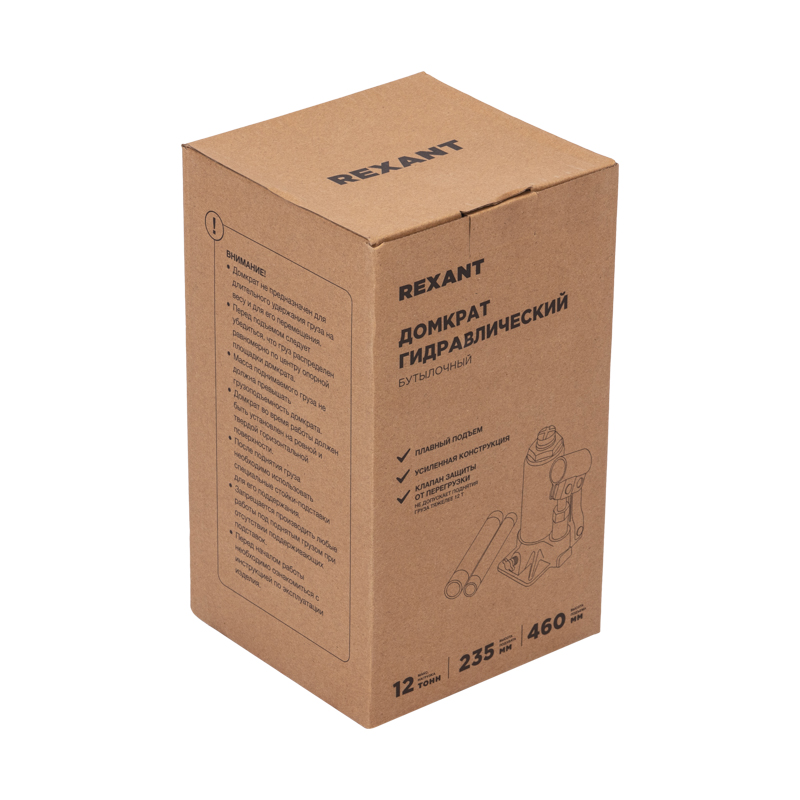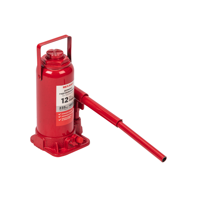 Гидравлический бутылочный домкрат 12 т Rexant поднимает грузы массой до 12 тонн на высоту до 460 мм. Оптимален для автомобилей с большим клиренсом. Будет полезен автолюбителям при проведении технического обслуживания и ремонта, а также для профессионалов на СТО. Отличается плавностью хода, надежностью и жесткостью конструкции.