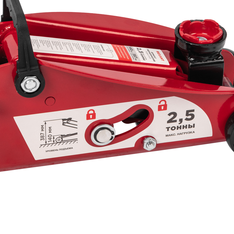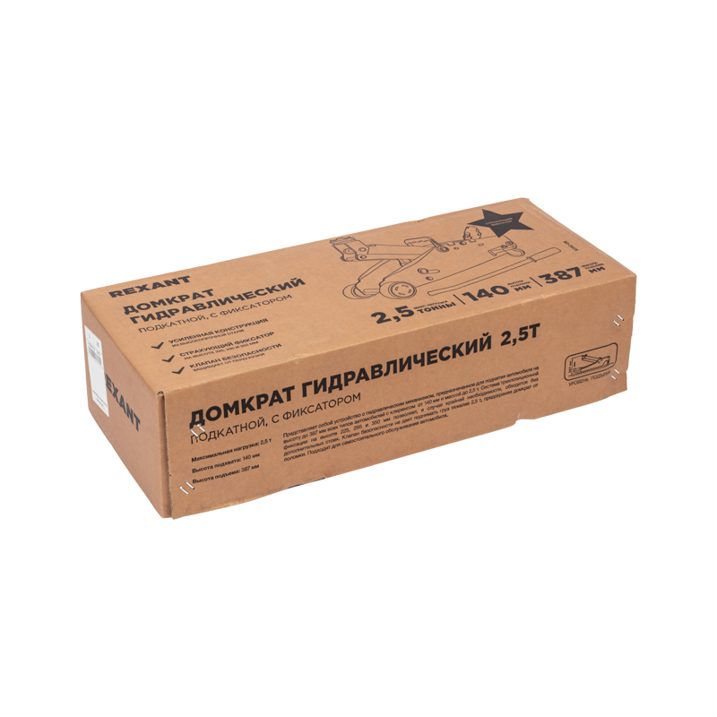 Домкрат гидравлический подкатной 2,5 т Rexant, с фиксатором - представляет собой устройство с гидравлическим механизмом, предназначенное для поднятия автомобиля на заданную высоту. Отличается плавностью хода, надежностью и жесткостью конструкции.