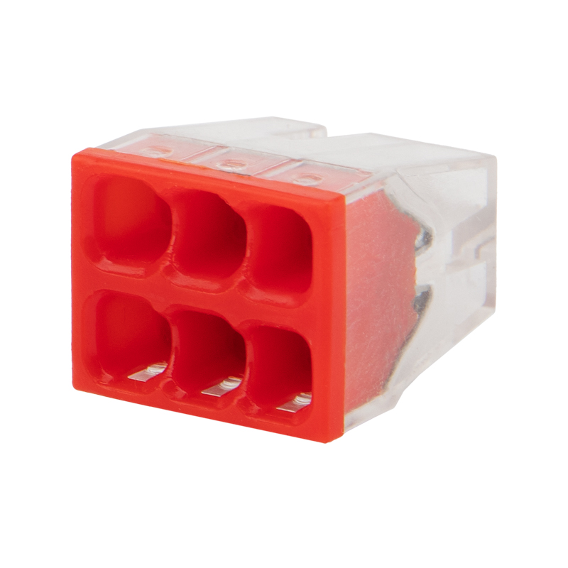 Компактный прозрачный корпус удобен для контроля соединения, а яркая цветовая разметка способствует визуальному различию клемм по количеству проводников.