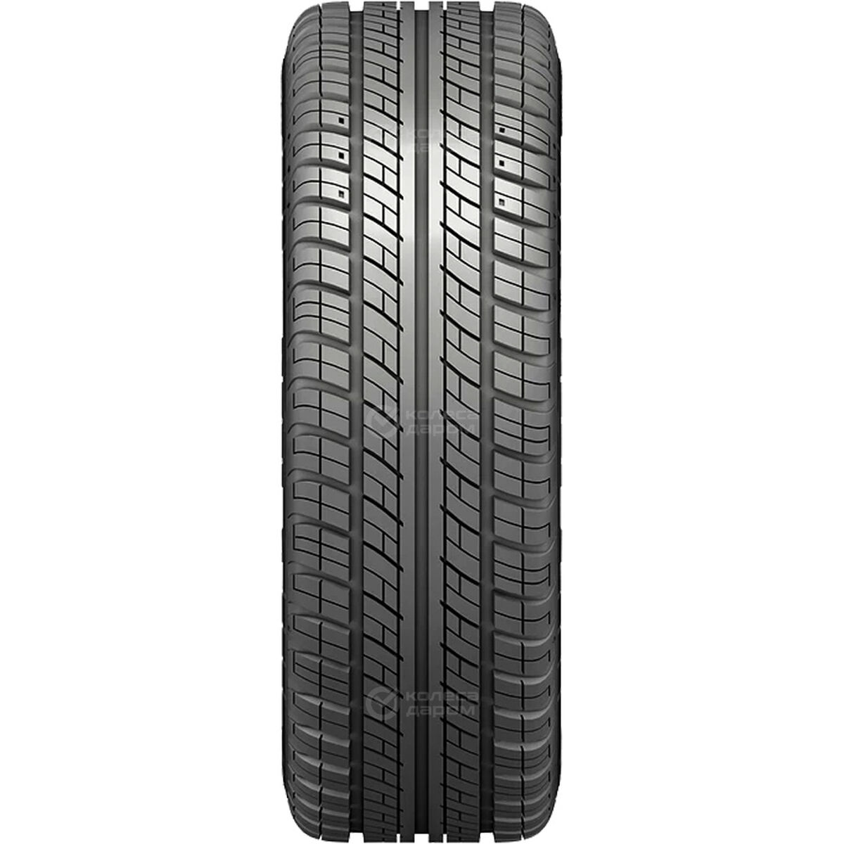 В центральной части симметричного ненаправленного протектора — два продольных ребра. Диагональные ламели делят их на небольшие блоки разных размеров, увеличивают пятно контакта, обеспечивают стабильный разгон и эффективное торможение.