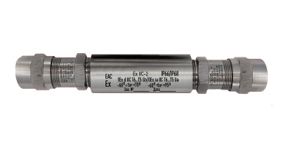 Устройство соединительное из нержавеющей стали, комплектуются сменными металлическими кабельными вводами Ex МКВМ или аналогичными вводами МКВ количеством 2-х штук, может оснащаться резьбовыми переходниками. Материал вводов и переходников определяется при заказе. Устройство Ех УС-2 комплектуются пластиковыми клемниками с диаметром подключаемого кабеля от 2.5 мм2 до 10 мм2. Количество клеммных пар - 8. IP66/IP68