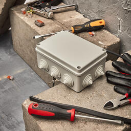 Распаячная коробка предназначена для защиты кабельных соединений от пыли, влаги и механических повреждений. Предназначена для крепления на стены, потолки, лотки. Винтовое крепление крышки, дополнительная влагозащита. Укомплектована вводными сальниками.Характеристики:Размер: 150х110х70 ммСтепень защиты: IP55Цвет: серыйКоличество вводов: 10Материал: полипропилен