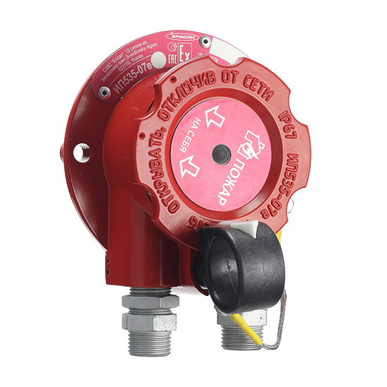 Извещатель пожарный ручной взрывозащищенный ИП535-07е в алюминиевом корпусе применяется в системах пожарной сигнализации и пожаротушения. Предназначен для ручного включения сигнала пожарной тревоги во взрывоопасных зонах или зонах общепромышленного назначения. Активация извещателя производится путем извлечения приводного элемента. Этот способ принципиально отличается от способов запуска ручного извещателя у имеющихся аналогов. Особенности- «антивандальная» конструкция корпуса, подключение как на размык цепи, так и на замык, приводной элемент - магнитоуправляемый, виброустойчивый и ударопрочный. Для комплектации необходимо выбрать 2 каб. ввода. Извещатель выпускается в двух модификациях- А – (класс А) - активация одним действием,В – (класс В) - активация несколькими действиями. Возможно укомплектовать дополнительным оборудованием- СЗК ИП535 - защитный козырек, МТШ - метка токового шлейфа, РМРС-с сертификатом РМРС.