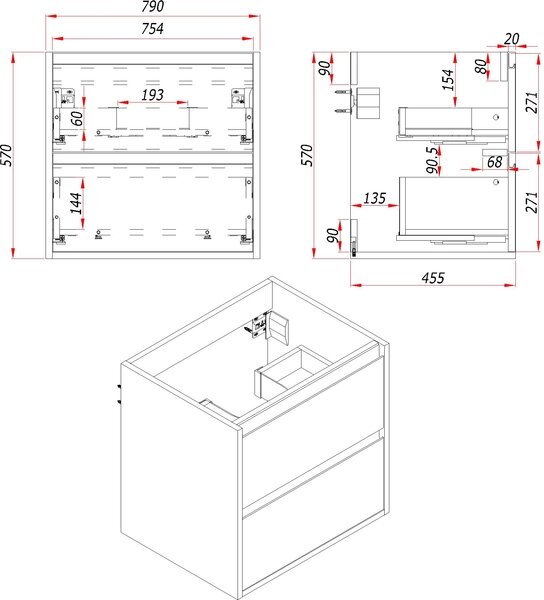 Тумба с умывальником зов парма 80 / P80LA0mamc1B-LDSPW6002