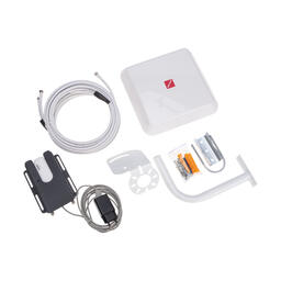 В комплект входит: Антенна 3G/4G с кронштейном, коаксиальный кабель для соединения антенны с модемом, LTE модем с кронштейном для крепления на стену, SIM-карта, блок питания с USB кабелем.