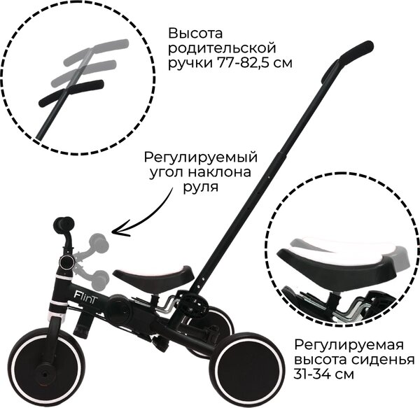 Трехколесный велосипед с ручкой Bubago Flint / BG-FPY-109-10