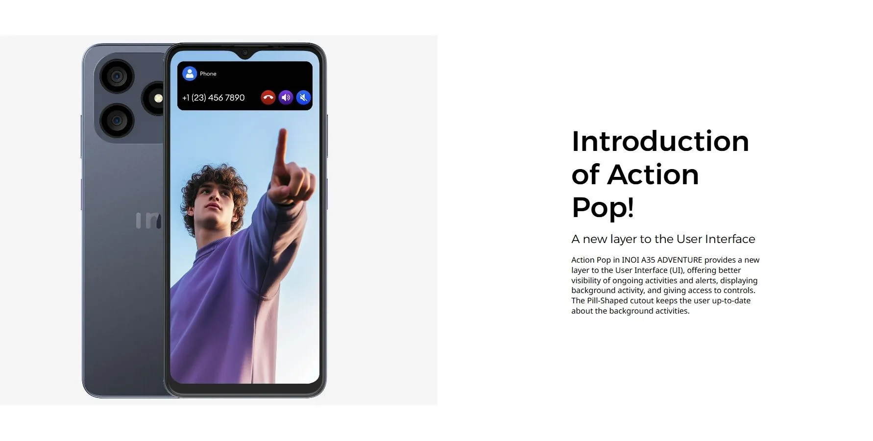 INOI A35 — это стильный смартфон с большим экраном с частотой 90 Гц. Устройство оснащено ярким и чётким IPS-дисплеем с диагональю 6.56 дюймов и разрешением 1612x720 пикселей, который обеспечивает отличное качество изображения и комфортное использование. Смартфон работает на базе операционной системы Android 14, которая предлагает удобный и интуитивно понятный интерфейс. INOI A35 Adventure оснащен процессором Unisoc Tiger T606, что обеспечивает быструю и плавную работу устройства. Основная двойная камера 50+0.08 Мп позволит делать качественные и яркие фотографии и видео. Смартфон имеет емкий аккумулятор на 5000 мАч, что обеспечивает длительное время работы без подзарядки.