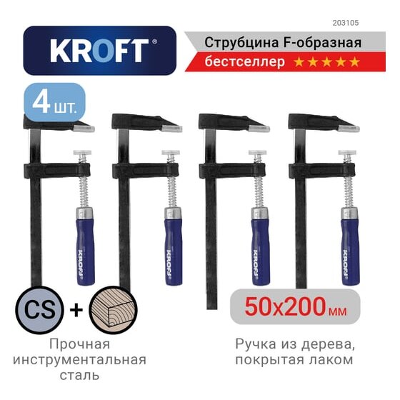 Набор струбцин KROFT 203105 F-образных 4 шт