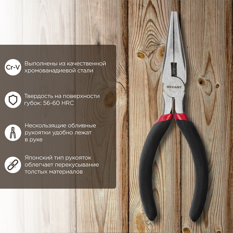 Тонкогубцы REXANT 160 мм предназначены для проведения точных работ, а также для монтажа слаботочных цепей. Подходят как для профессиональных работ, так и для бытового применения. Инструмент изготовлен из высокоуглеродистой стали. Губки инструмента закалены, что значительно увеличивает рабочий ресурс инструмента.Специальная форма облегченных рукояток обеспечивает дополнительный комфорт при работе. Небольшие размеры инструмента позволяют выполнять работу в труднодоступных местах.Хром-ванадиевый сплав (Chrome Vanadium) CrV, из которого изготовлен инструмент, обладает такими свойствами, как прочность, жесткость и устойчивость к износу. Во время прокаливания он менее подвержен деформациям и потере первоначальной формы, чем другие типы инструментальной стали.Технические характеристики: Материал рабочей части: высокоуглеродистая сталь CrV Твердость на поверхности инструмента: ≥48 HRCТвердость на поверхности губок: 58-62 HRCОблегченные рукояткиСпособ обработки: закалкаДлина инструмента: 160 ммМатериал рукояток: ПВХ