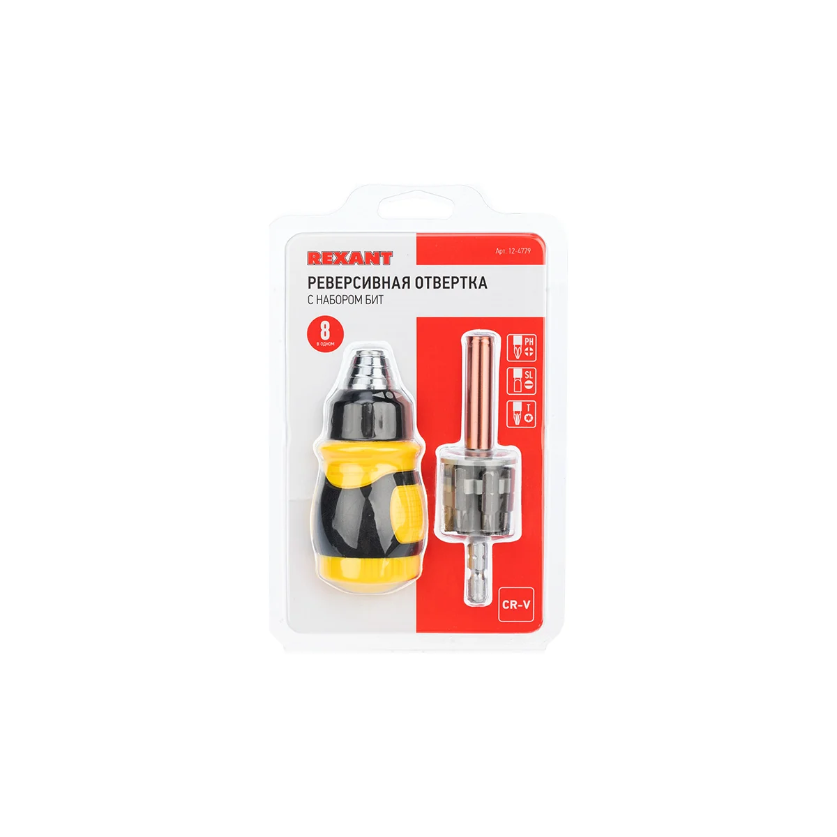 Отвертка реверсивная REXANT 12-4779 с набором бит 8 предметов