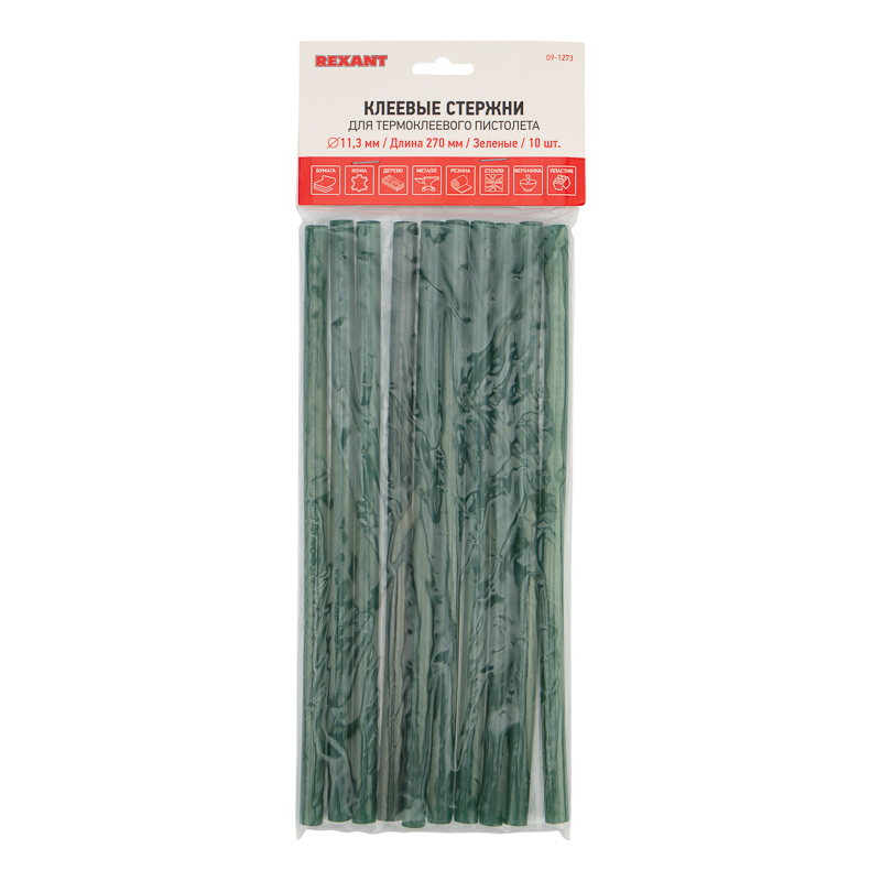 Клеевой стержень предназначен для склеивания разных поверхностей в любом сочетании: из дерева, пластмассы, картона, бумаги, металла, керамики и т. д. Клеевой стержень состоит из смолы ЭВА, поэтому он нетоксичен, не выделяет запахов и не содержит в своем составе растворителей.Время застывания клея — 40-60 секунд, что не заставит долго ждать, когда поверхность будет готова к дальнейшей обработке или использованию. Клей водоустойчив, поэтому поверхности будут склеены почти в любых обстоятельствах. Основные характеристики:Диаметр стержня: 11.3 ммДлина стержня: 270 ммТемпература плавления: 80 ℃Вязкость клея: 180 ºC – 9500 мПа/сЦвет: зеленыйОсновные преимущества клеевых стержней:- состоят из смолы ЭВА, поэтому он нетоксичен, не выделяет запахов и не содержит в своем составе растворителей, т.е. абсолютно безопасны для окружающей среды, и человека;- надежно склеивают предметы;- не требуют особых навыков при склеивании;- время застывания клея не более 1 минуты;- устойчивы к воздействию воды и слабым кислотным соединениям;- не требует особых условий хранения.