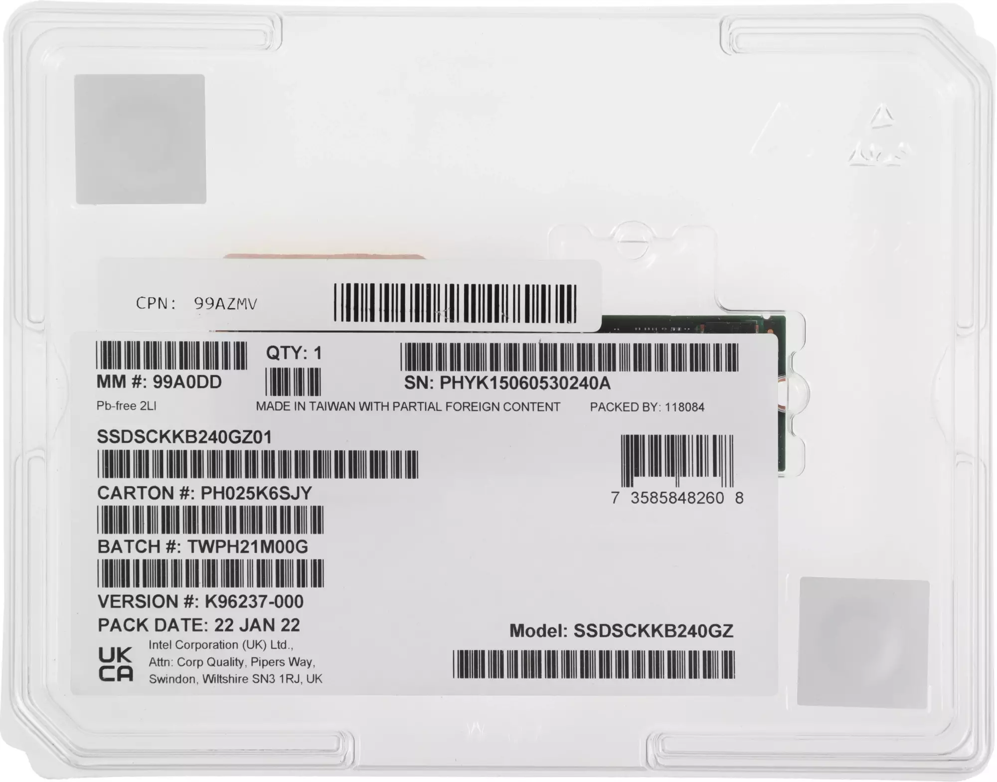 Твердотельный накопитель Intel D3-S4520 240ГБ, M.2 2280, SATA-III, M.2 SSDSCKKB240GZ01 (SSDSCKKB240GZ01 99A0DD)