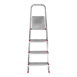 Стальная стремянка REXANT – недорогой и прочный помощник при высотных работах. Применяется как при коммунальной и строительной деятельности, так и в быту, дома, на даче, в гараже и саду. Устойчивая конструкция и надежная фиксация в рабочем положении обеспечивается за счет специального соединительного ушка.Пластиковые ножки предотвращают скольжение и не царапают напольное покрытие.Усиленное упрочненное крепление пластиковых ножек предотвращает их выпадение.Гальваническое покрытие придает надежную устойчивость к коррозии.Передовая технология заклепочного крепления ступенек.Широкие ступени с противоскользящим рифлением.Технические характеристики:Количество ступенек: 4Высота площадки: 81 смВысота стремянки в разложенном состоянии: 126 смГабаритная высота: 135 смШирина: 44 смДлина: 83 смВес: 4,9 кгМаксимальная нагрузка: 150 кг