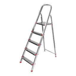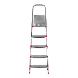 Стальная стремянка REXANT – недорогой и прочный помощник при высотных работах. Применяется как при коммунальной и строительной деятельности, так и в быту, дома, на даче, в гараже и саду. Устойчивая конструкция и надежная фиксация в рабочем положении обеспечивается за счет специального соединительного ушка.Пластиковые ножки предотвращают скольжение и не царапают напольное покрытие.Усиленное упрочненное крепление пластиковых ножек предотвращает их выпадение.Гальваническое покрытие придает надежную устойчивость к коррозии.Передовая технология заклепочного крепления ступенек.Широкие ступени с противоскользящим рифлением.Технические характеристики:Количество ступенек: 5Высота площадки: 102 смВысота стремянки в разложенном состоянии: 147 смГабаритная высота: 160 смШирина: 46 смДлина: 99 смВес: 5,9 кгМаксимальная нагрузка: 150 кг