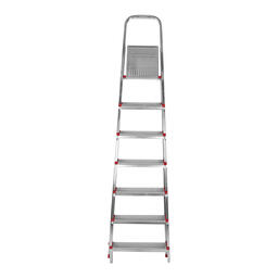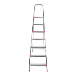 Стальная стремянка REXANT – недорогой и прочный помощник при высотных работах. Применяется как при коммунальной и строительной деятельности, так и в быту, дома, на даче, в гараже и саду. Устойчивая конструкция и надежная фиксация в рабочем положении обеспечивается за счет специального соединительного ушка.Пластиковые ножки предотвращают скольжение и не царапают напольное покрытие.Усиленное упрочненное крепление пластиковых ножек предотвращает их выпадение.Гальваническое покрытие придает надежную устойчивость к коррозии.Передовая технология заклепочного крепления ступенек.Широкие ступени с противоскользящим рифлением.Технические характеристики:Количество ступенек: 7Высота площадки: 146 смВысота стремянки в разложенном состоянии: 189 смГабаритная высота: 208 смШирина: 51 смДлина: 130 смВес: 7,8 кгМаксимальная нагрузка: 150 кг