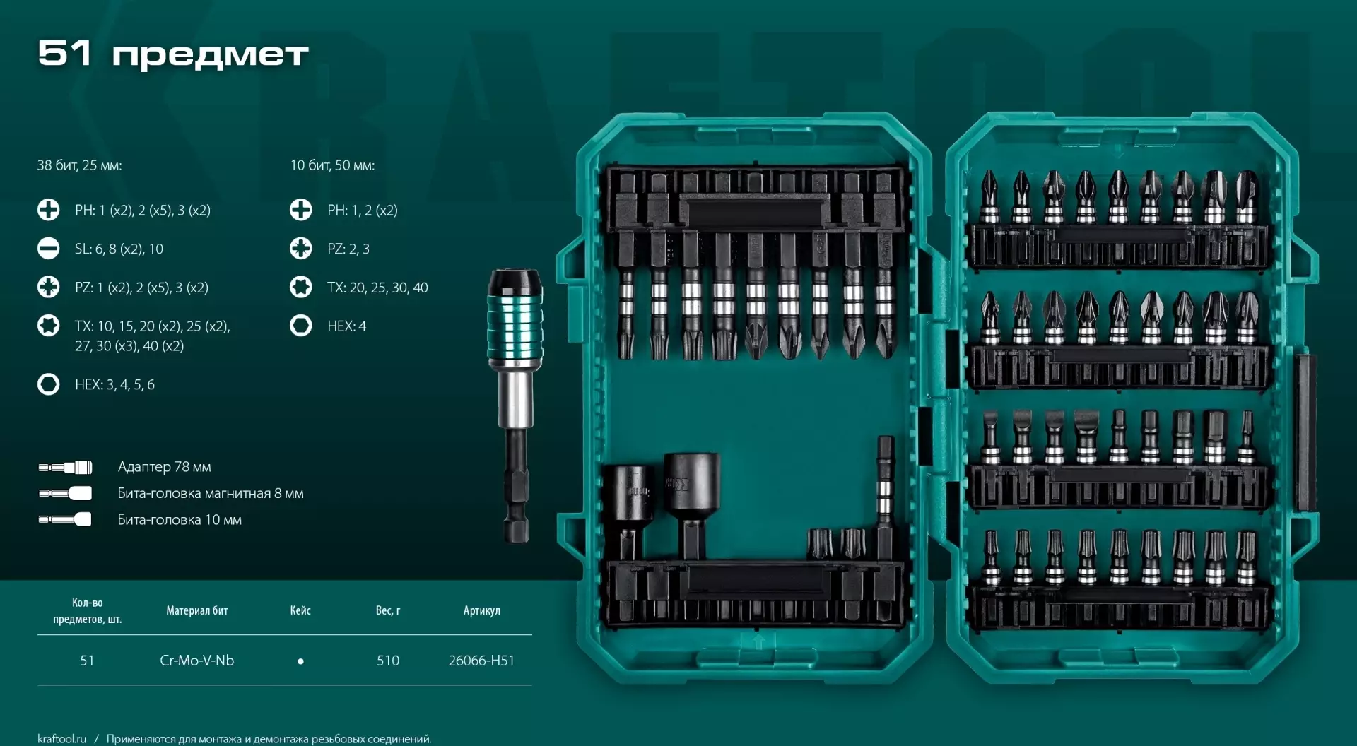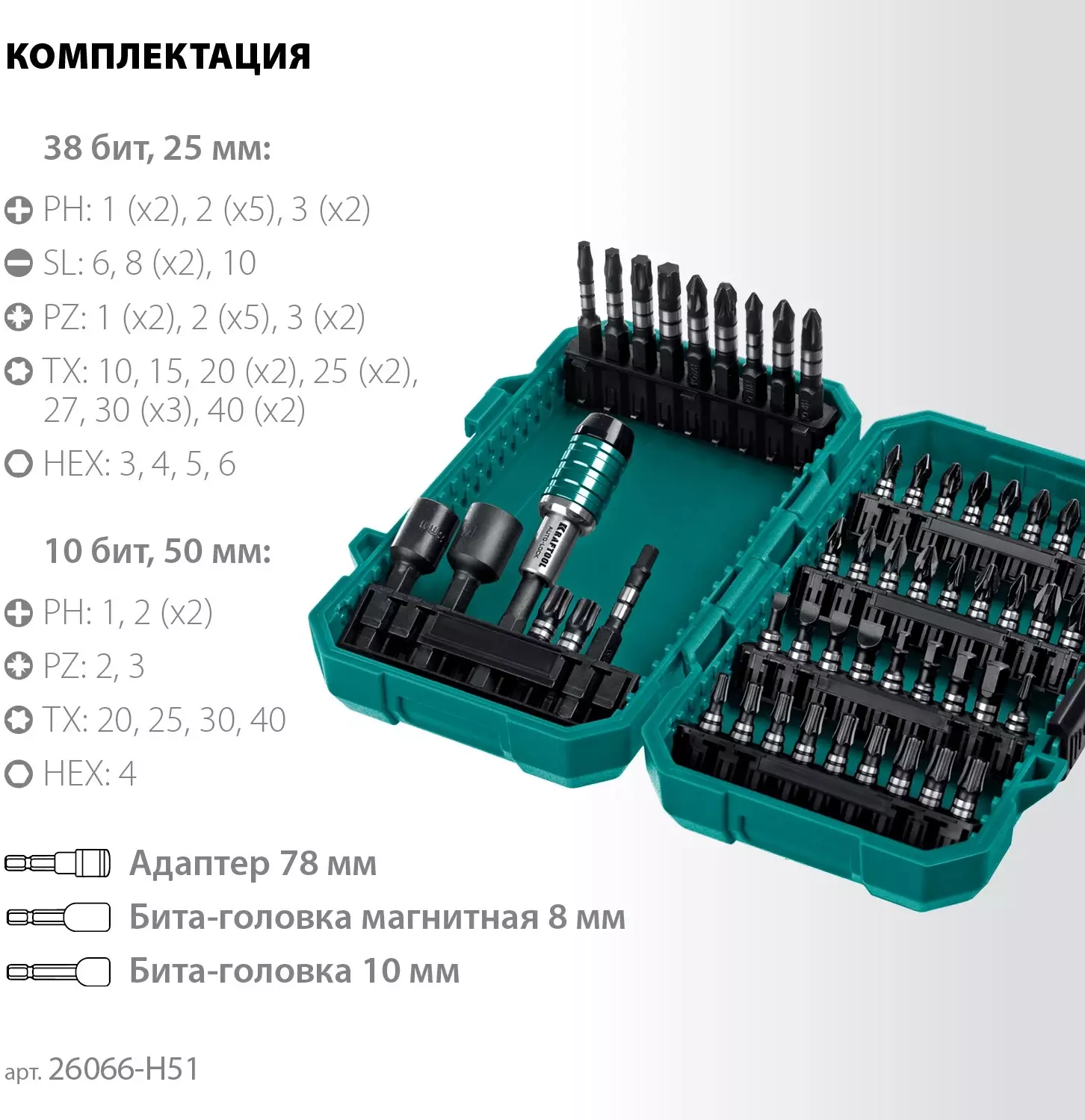 Набор бит Kraftool 26066-H51 универсал. (51пред.) для шуруповертов
