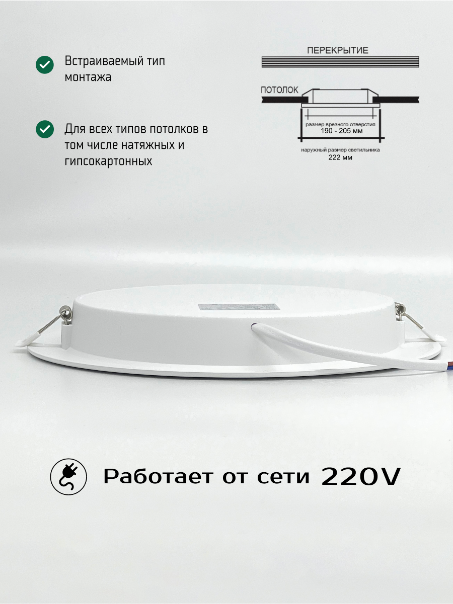• Размер монтажного отверстия 14.5 см (14.5–15.5 см)