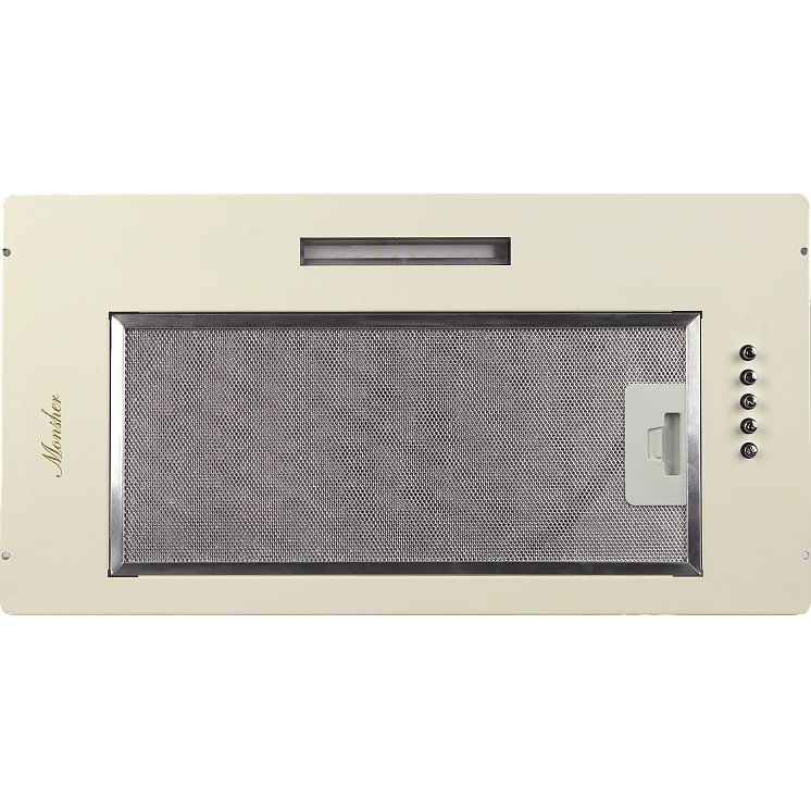 Встраиваемая вытяжка MONSHER/ Встраиваемая вытяжка, ширина 60 см, отвод/рециркуляция, 500 м3/час, механическое кнопочное управление, 3 скорости, светодиодное освещение 1х5 Вт, металлические жироулавливающие фильтры, угольный фильтр KFY (опция), уровень шума 45 дБ, цвет бежевый ПРОМО