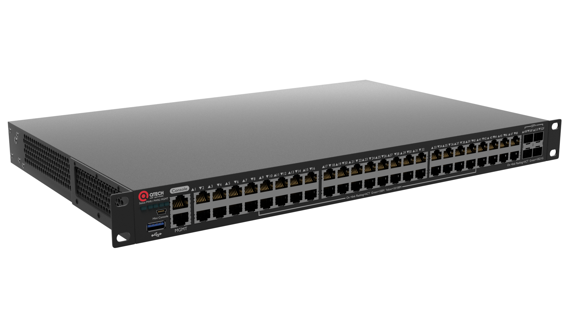 консольный порт, MGMT, 2 слота расширения для интерфейсных модулей, 2 сменных БП (поставляются отдельно) разъем питания на задней панели, 100-240В AC, размеры ШхГхВ (440x300x44 мм)