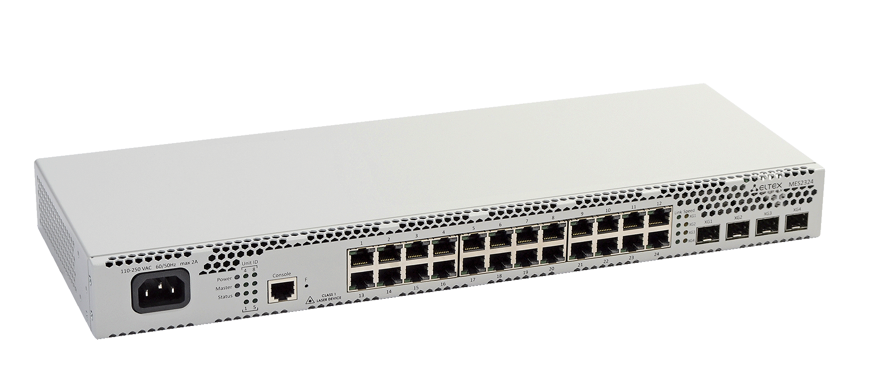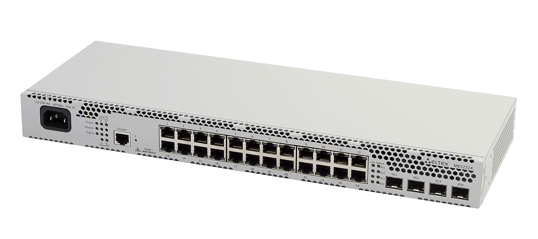 Управляемый стекируемый коммутатор уровня L2+: Marvel 98DX3236, 24х10/100/1000BASE-T (RJ-45), 4х10GBASE-R (SFP+)/1000BASE-X (SFP), RS-232/RJ-45