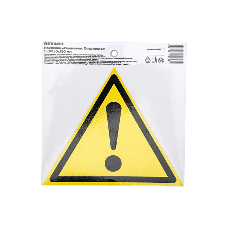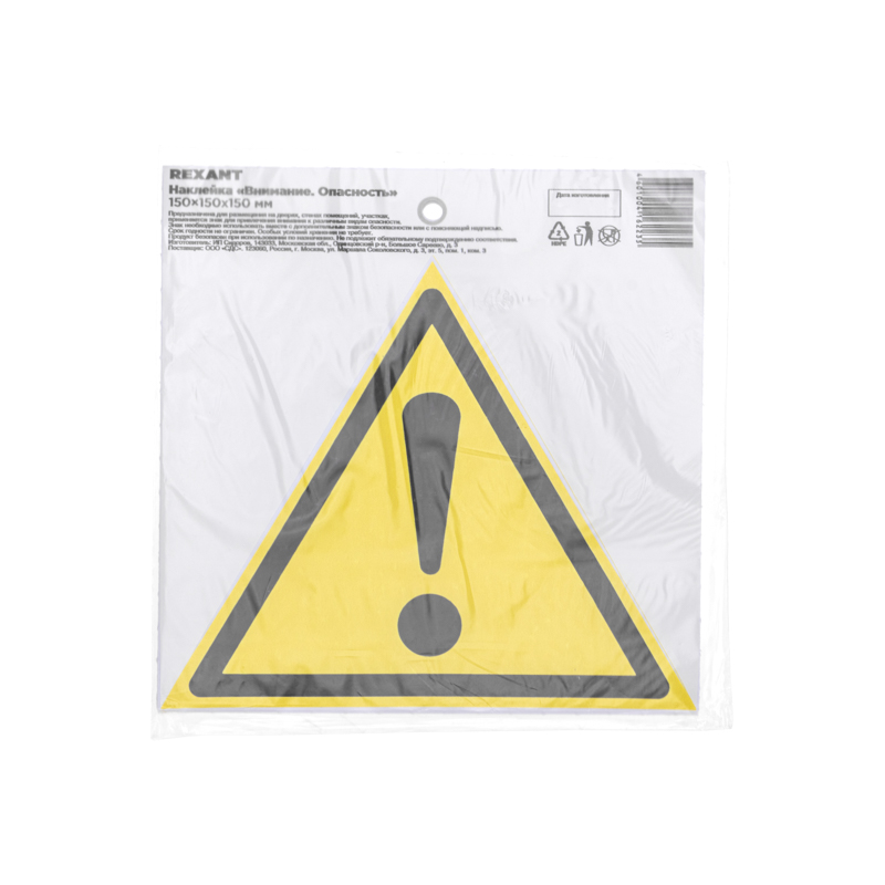 Знак безопасности (наклейка) «Внимание. Опасность» размещают на дверях, стенах помещений, участках, применяется знак для привлечения внимания к различным видам опасности. Знак необходимо использовать вместе с дополнительным знаком безопасности или с поясняющей надписью. Такие наклейки предупреждают и информируют окружающих. • Знаки хорошо видны и сохраняют яркость цветов долгое время даже при постоянном использовании.• Имеют хорошую устойчивость к смазыванию, стойкость к прямым солнечным лучам, перепадам температуры, мелким механическим воздействиям.• Выполнены из прочного, износостойкого материала, легко клеятся, крепко держатся и не оставляют следов после снятия (* предназначены для нанесения на ровную сухую поверхность).Характеристики:Тип продукта: наклейка (ПВХ пленка с полуглянцевой поверхностью, бумажная подложка)Размер 150х150х150 ммСамоклеящийся: да Формат: треугольникИзображение: картинкаЦвет: желтый, черныйСтрана-производитель: Россия