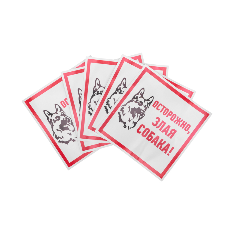 Знак информационный (наклейка) "Осторожно, злая собака!" предназначен для размещения на ограждениях, дверях и стенах помещений. Информирует о том, что данная территория находится под охраной, на территории опасное животное. • Знак хорошо виден и сохраняет яркость цветов долгое время даже при постоянном использовании.• Имеет хорошую устойчивость к смазыванию, стойкость к прямым солнечным лучам, перепадам температуры, мелким механическим воздействиям.• Выполнен из прочного, износостойкого материала, легко клеится и крепко держится и не оставляет следов после снятия (* предназначен для на несения на ровную сухую поверхность).ХАРАКТЕРИСТИКИтип продукта: наклейка (ПВХ пленка с полуглянцевой поверхностью, бумажная положка)самоклеящийся: да вертикаль: 20 см горизонталь: 20 смизображение: надпись, картинкацвета: красный, черный, белыйстрана-производитель: Россия