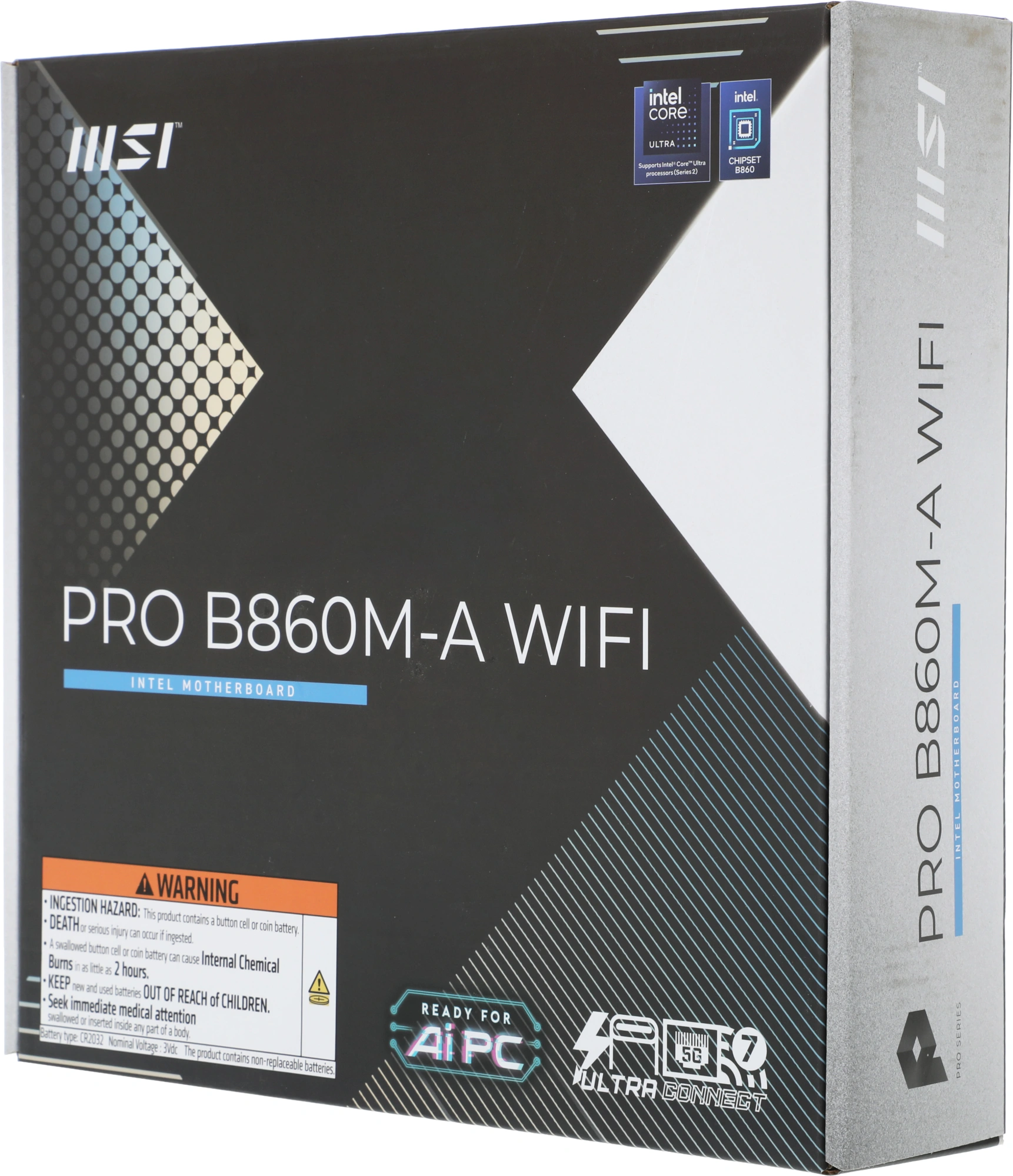 Материнская плата MSI PRO B860M-A WIFI Soc-1851 Intel B860 4xDDR5 mATX AC`97 8ch(7.1) 5Gigabit RAID+HDMI+DP