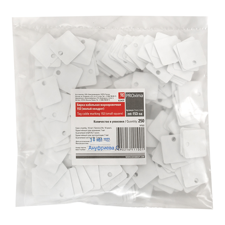 Бирки маркировочные EKF PROxima используются для маркировки кабельных линий, узлов и проводов, они придают информативность кабельной линии, что позволяет быстро идентифицировать кабель без использования тестового оборудования. Бирка У-134 (большой квадрат) и У-153 (малый квадрат) – для силовых кабелей напряжением до 1000 В. Бирка У-135 (круг) – для силовых кабелей напряжением свыше 1000 В. Бирка У-136 (треугольник) – для контрольных кабелей. Материал бирок – полипропилен с матовой поверхностью. Белый цвет и матовая поверхность позволяет наносить маркировку любым удобным способом, например, маркером или карандашом.