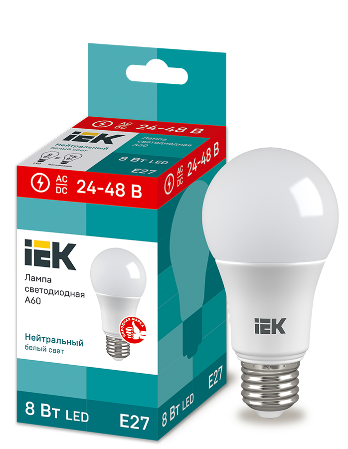 Лампа светодиодная LLE-A60-08-24-48-40-E27