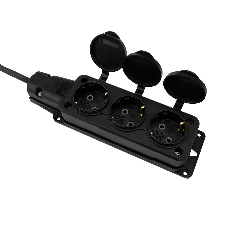 Морозостойкий силовой шнур-удлинитель REXANT с 3 гнездами предназначен для подключения электрических приборов и электроинструмента в экстремальных условиях отрицательных температур, когда недостаточно стандартной длины шнура для питания от стационарных розеток. Удлинитель с заземлением REXANT длиной 10 метров предназначен для использования в условиях экстремальных температур в помещениях и вне помещений. Электрическая вилка на проводе европейского стандарта. Основные характеристики: Тип: удлинитель Количество розеток: 3 Тип розетки: евро Напряжение: 220-250 В Заземление: да Длина провода: 10 м Тип провода: КГтп Сечение провода: 3х1,5 Максимальная нагрузка:(16 А/3,6 кВт) Степень защиты: IP44 Рабочая температура: –40...+50 ºС Цвет: черный
