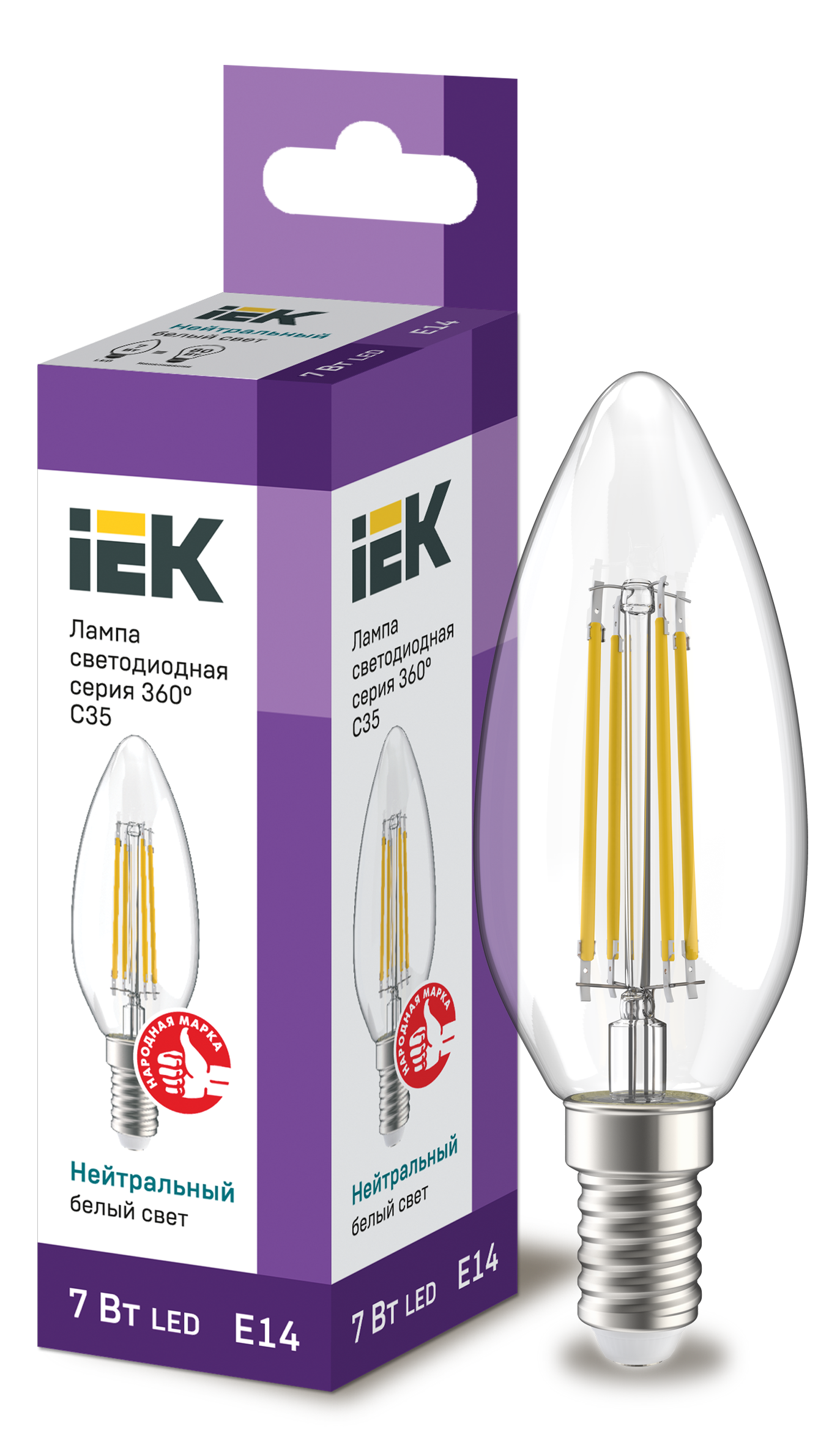 Лампа светодиодная LLF-C35-7-230-40-E14-CL