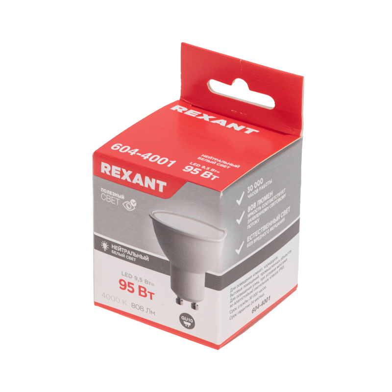 Светодиодная лампа рефлектор REXANT служит для освещения бытовых помещений и офисов. Пользуется популярностью при создании декоративного, акцентного, или специального освещения, а также при подсветке небольших предметов. Оснащена штырьковым цоколем GU10. Цвет свечения – нейтральный (4000K). Мощность – 9,5Вт.