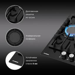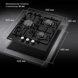 Подробная информация о конфоркахПравая ближняя конфоркагазовая, мощность 1 кВт, размер 50 мм, одноконтурнаяПравая дальняя конфоркагазовая, мощность 1.7 кВт, размер 70 мм, одноконтурнаяСредняяконфоркагазовая, мощность 2.9 кВт, размер 80 мм, одноконтурная