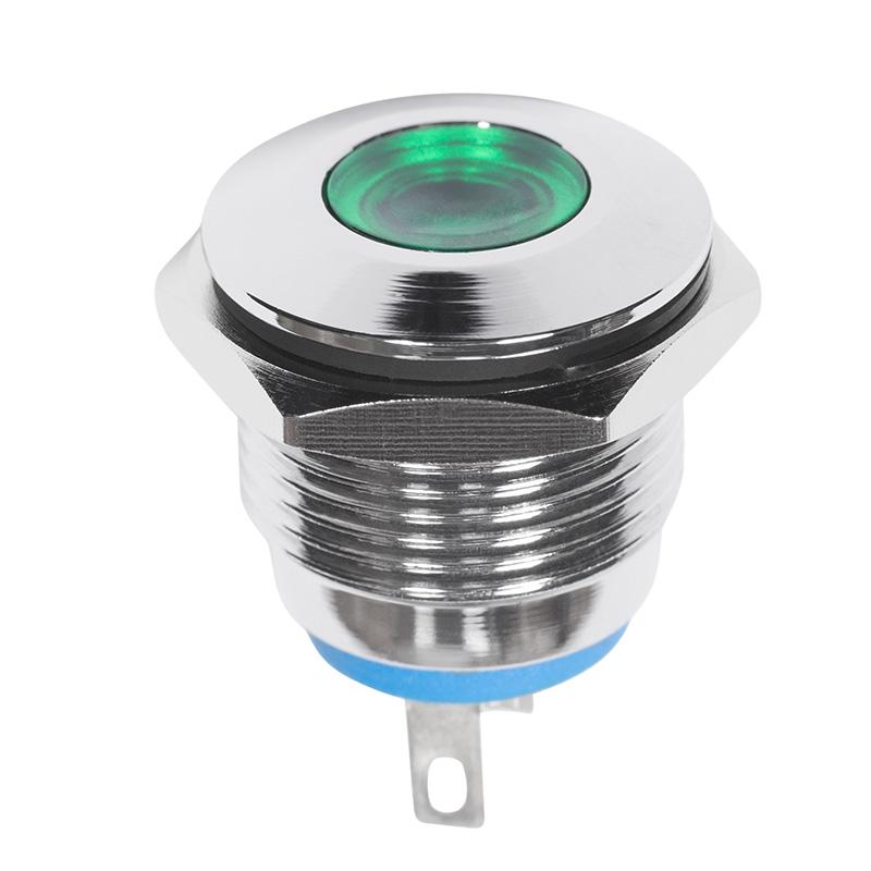 Индикатор металл Ø16 12В подсв/зеленая LED предназначен для индикации состояния электрических цепей. Такие индикаторы устанавливаются на лицевых панелях управления электрооборудованием (в объектах энергоснабжения, измерительных приборах, блоках питания, легковых и грузовых автомобилях, и других местах) с рабочим напряжением не более 12В. Разнообразные цветовые варианты исполнения позволяют эффективно комплектовать панели управления. Изделие состоит из двух основных частей - лицевой части (головки) и контактной. Монтаж осуществляется без применения винтов на плоских панелях толщиной от 0.5мм до 5мм, с помощью гайки. Подключение контактов осуществляется с помощью пайки.Основные характеристики:Номинальное напряжение: 12В;Номинальный ток: 15mA;Цвет индикации: зеленый LED;Установочный диаметр: 16мм;Рабочая температура: от -25℃..+55℃;Допустимая влажность: до 85%, без выпадения конденсата.Преимуществами использования данного изделия является увеличенная яркость индикации за счет LED подсветки, быстрота и удобство монтажа.