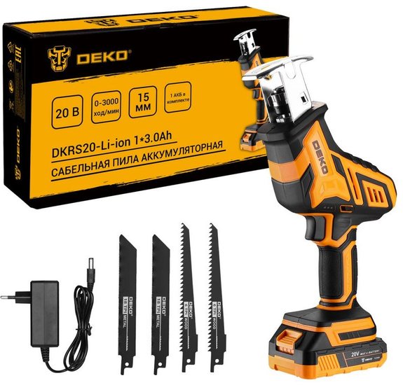 • Комплектация - Сабельная пила - 1 шт.- Аккумулятор 3,0 Ач - 1 шт.- Зарядное устройство - 1 шт.- Пильное полотно - 4 шт.- Руководство по эксплуатации- Коробка