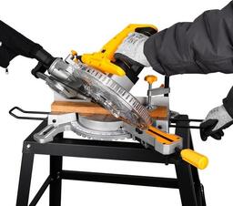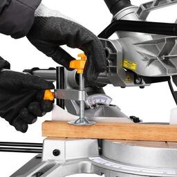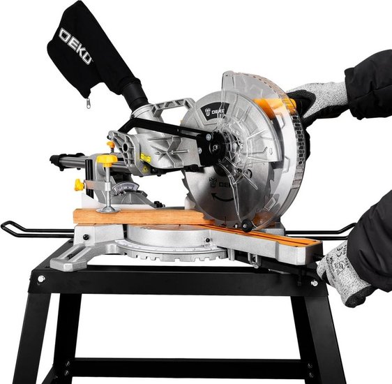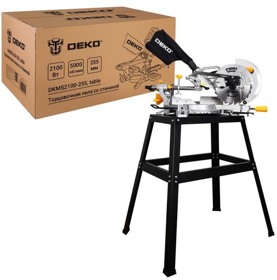 • Комплектация - Торцовочная пила - 1 шт.- Диск пильный - 1 шт.- Струбцина - 1 шт.- Удлинитель стола - 2 шт.- Пылесборник - 1 шт.- Шестигранный ключ - 1 шт.- Угольные щетки - 2 шт.- Станина – (металлическая панель – 16 шт, резиновая опора – 4 шт, винт – 28 шт, гайка – 28 шт, уплотнительные кольца – 4 шт, коробка – 1 шт) - 1 шт.- Руководство по эксплуатации- Коробка