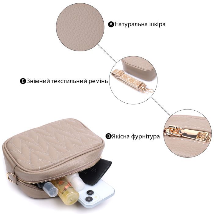 Сумка Vintage З натуральної шкіри Бежева (22612)