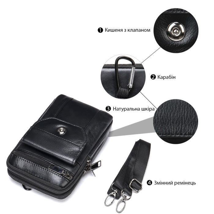 Сумка Vintage Шкіряна на пояс Чорна (20358)
