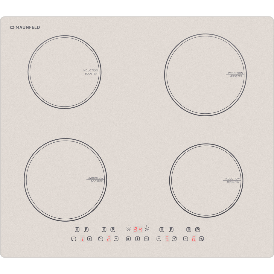 Встраиваемые индукционные панели MAUNFELD/ Индукционная варочная панель MAUNFELD CVI594BG, 60 см, 4 конфорки, сенсорное управление, 4 конфорки, мощность конфорок 1500, 1500, 1200, 1200 Вт, таймер, автоматическое выключение, бустер, блокировка панели, пауза, бежевый цвет