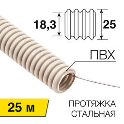 Гофрированная труба диаметром 25 мм предназначена для одиночной прокладки в ней телефонных, компьютерных, телевизионных и электрических сетей, работающих при электрическом напряжении постоянного или переменного тока величиной не более 1000 В. Сети прокладываются скрытым, полускрытым и открытым способами в стационарных электроустановках бытового и аналогичного назначения, эксплуатируемых внутри помещений.