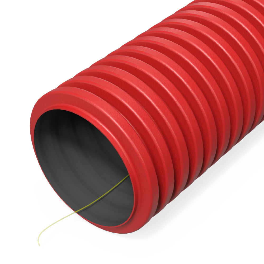 Усиленные двустенные гофрированные трубы «Промрукав» Тип 1250 предназначены для защиты изолированных проводов и кабелей в электрических установках и системах связи от механических повреждений и агрессивного воздействия окружающей среды. Используются для укладки кабельной канализации в грунте, в местах, где могут присутствовать повышенные динамические нагрузки (на таких участках, как под автомобильными и ж/д магистралями), а так же при заливке бетоном. Благодаря высокой коррозионной и химической стойкости трубы очень долговечны, гарантированный срок эксплуатации не менее 100 лет. Дополнительным преимуществом является легкость монтажа, за счет малого веса и большой длины бухт. В двустенных гофрированных гибких трубах используется полиамидная леска - зонд, которая служит для присоединения специальной протяжки для кабеля.
