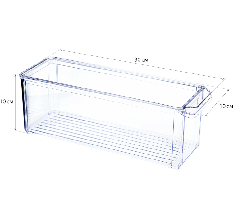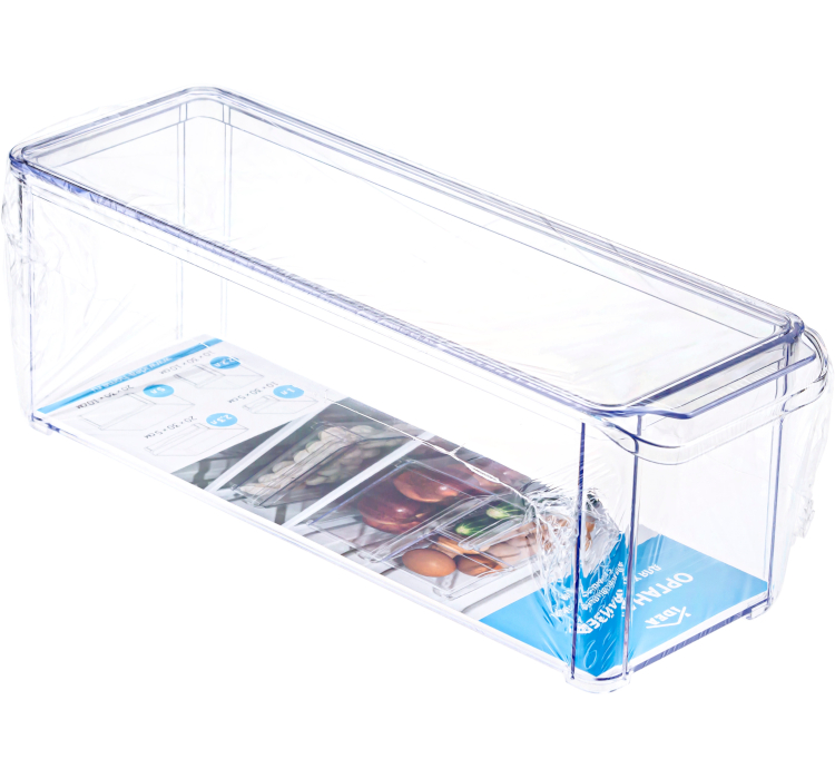 Органайзер для холодильника с крышкой 10х30х10см прозрачный М 1585 для поддержания порядка в холодильнике. Размер подобран для наилучшего размещения на полках холодильника. Практичная конструкция прямоугольной формы с крышкой. Благодаря крышке можете не волноваться, что внутрь попадёт пыль, грязь или влага. Это делает контейнер идеальным для хранения открытых упаковок с продуктами в холодильнике: запахи не будут смешиваться, а пища дольше останется свежей. Прозрачный пластик показывает содержимое. В передней части органайзер имеет удобную ручку с хватким выступом. Специальная конструкция позволяет составлять несколько органайзеров друг на друга. Безопасный и экологичный, подходит для хранения пищевых продуктов. Сохраняет внешний вид пластика при разных температурах. Объём — 2,2 л.